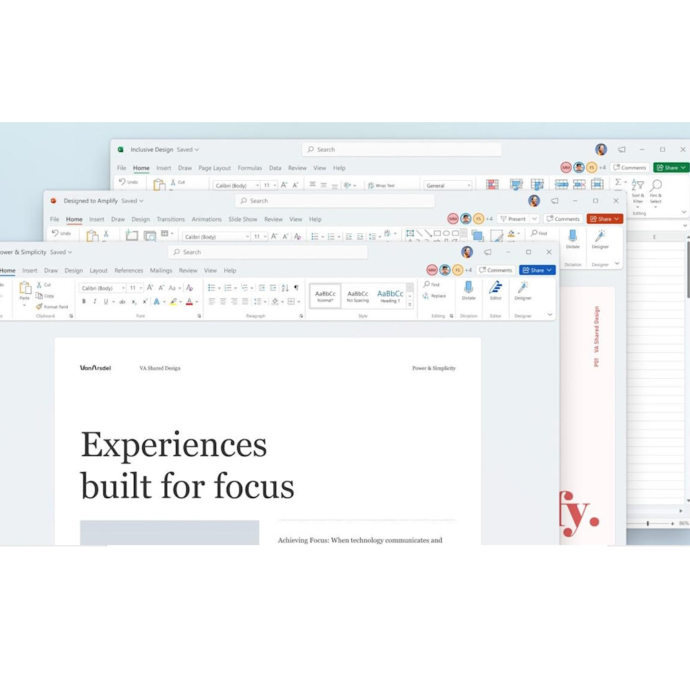 Descoperiți o experiență de utilizare rafinată cu Office 2021 Pro Plus. Interfața modernizată, cu un design coerent și atractiv, facilitează navigarea și crește productivitatea. Toate aplicațiile, de la Word la Excel și PowerPoint, oferă un aspect unificat și funcționalități avansate pentru o muncă eficientă și plăcută.